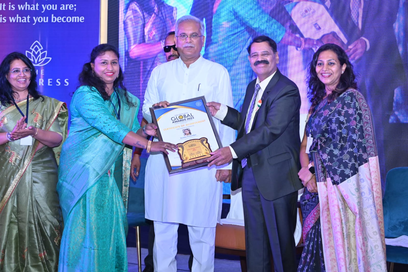 रायपुर, 29 अप्रैल 2023/ मुख्यमंत्री भूपेश बघेल को विश्वप्रसिद्ध सोरबोन यूनिवर्सिटी द्वारा छत्तीसगढ़ की ग्रामीण अर्थव्यवस्था को सीमित एवं स्थानीय संसाधनों की उपयोगिता के साथ आगे बढ़ाने की विशिष्ट पहल के लिए डॉक्टरेट की उपाधि से नवाजा गया। मुख्यमंत्री श्री बघेल आज श्री अरोबिंदो फाउंडेशन द्वारा राजधानी रायपुर स्थित होटल सायाजी में आयोजित सोरबोन यूनिवर्सिटी ऑफ पेरिस, फ्रांस के कार्यक्रम ’ग्लोबल अवार्ड्स 2023’ में शामिल हुए। इस अवसर पर इसरो के पूर्व वैज्ञानिक सुरेश कुमार, सोरबोन यूनिवर्सिटी के प्रोफेसर डॉ. विवेक, श्री अरोबिंदो योग एवं नॉलेज फाउंडेशन के डायरेक्टर डॉ. समरेन्द्र घोष, डॉ. बी.के. स्थापक, डॉ. संदीप मारवाह, डॉ. विनय अग्रवाल भी उपस्थित रहे।